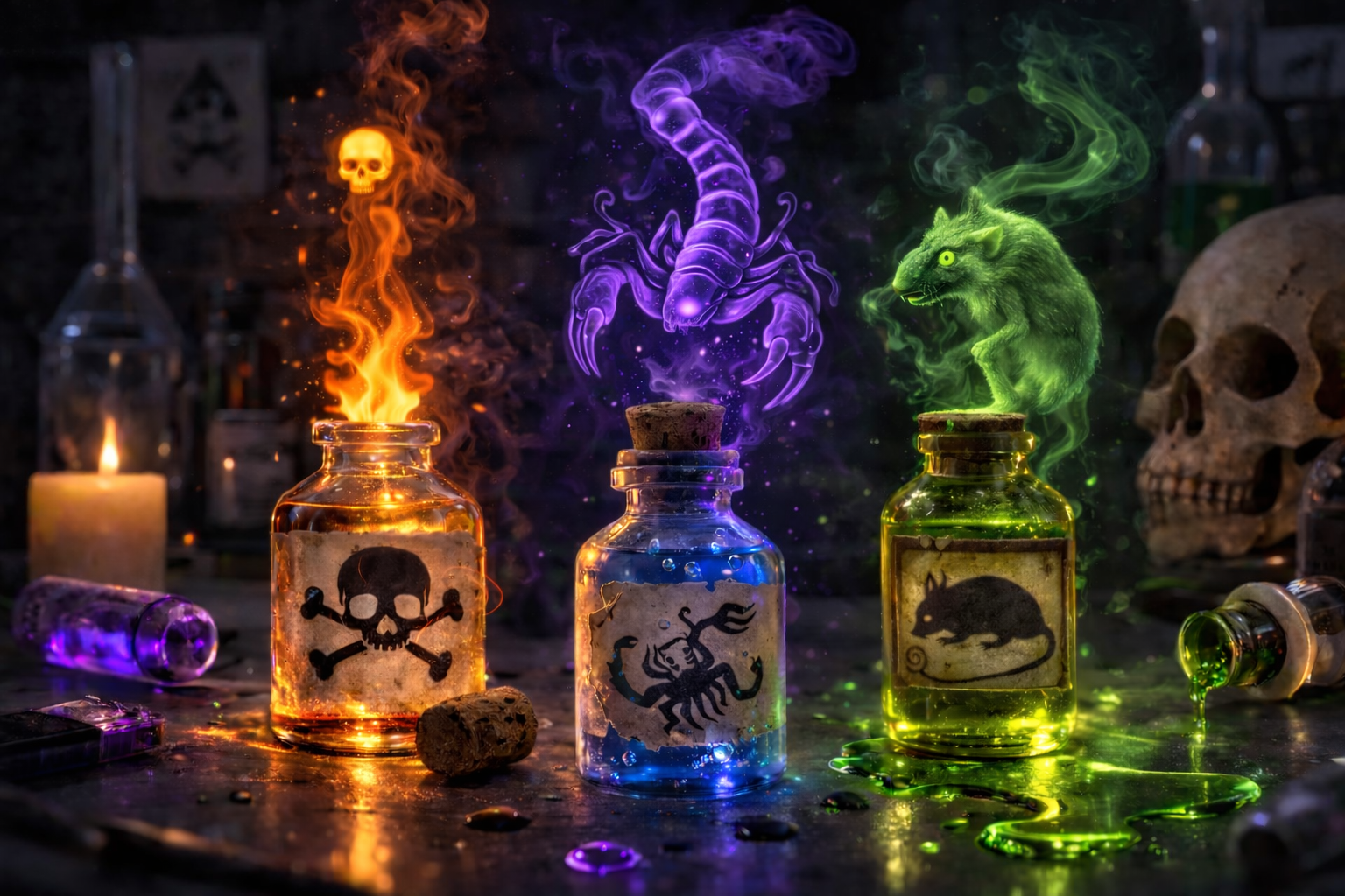 - Suicide or Murder: Poisons can be consumed directly from the bottle or added discreetly to bar drinks.